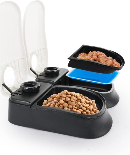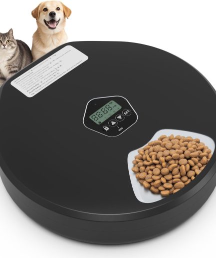 Automatic Pet Feeder for Wet & Dry Food, 5-Meal Timer Dispenser with 2 Ice Packs, Programmable Smart Feeder for Cats/Dogs – Keep Food Fresh Longer (Pet Feeder with 2 Ice Cube Tray)