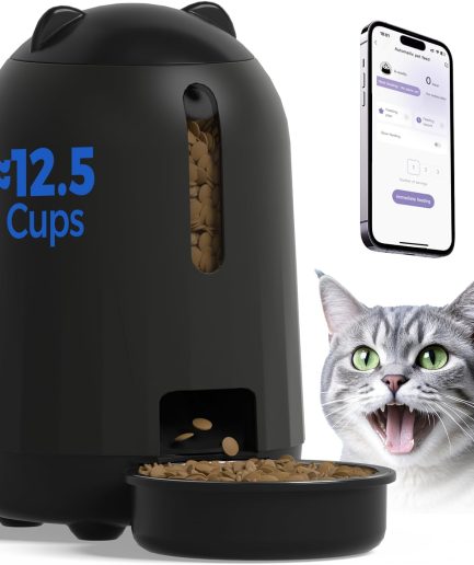 Automatic Cat Feeder, 2.4G WiFi Auto Cat Food Dispenser with App Control, 3L Auto Pet Feeder with Dual Power Supply, Detachable for Easy Clean for Cats and Small Dogs, Black