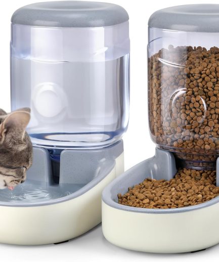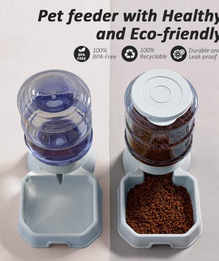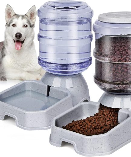 Pet Feeder and Water Food Dispenser Automatic for Dogs Cats, 100% BPA-Free, Gravity Refill, Easily Clean, Self Feeding for Small Large Pets Puppy Kitten Rabbit Bunny
