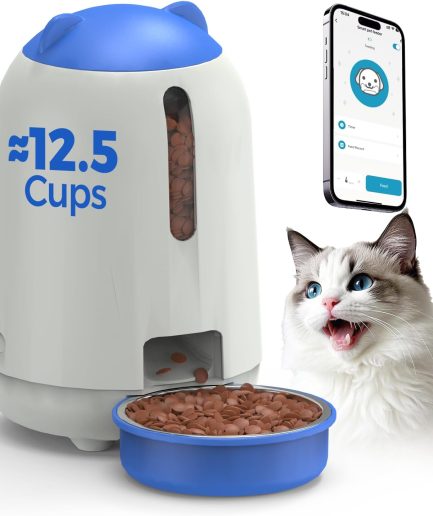 Automatic Cat Feeder, 2.4G WiFi Auto Cat Food Dispenser with App Control, 3L Auto Pet Feeder with Dual Power Supply, Detachable for Easy Clean for Cats and Small Dogs, Blue