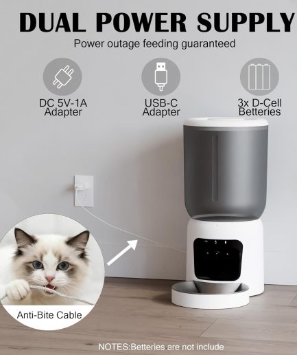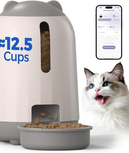 Automatic Cat Feeder, 2.4G WiFi Auto Cat Food Dispenser with App Control, 3L Auto Pet Feeder with Dual Power Supply, Detachable for Easy Clean for Cats and Small Dogs, Grey
