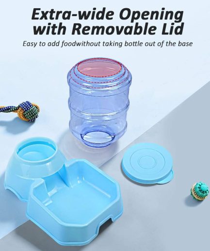 Pet Feeder and Water Food Dispenser Automatic for Dogs Cats, 100% BPA-Free, Gravity Refill, Easily Clean, Self Feeding for Small Large Pets Puppy Kitten Rabbit Bunny (E-Blue)