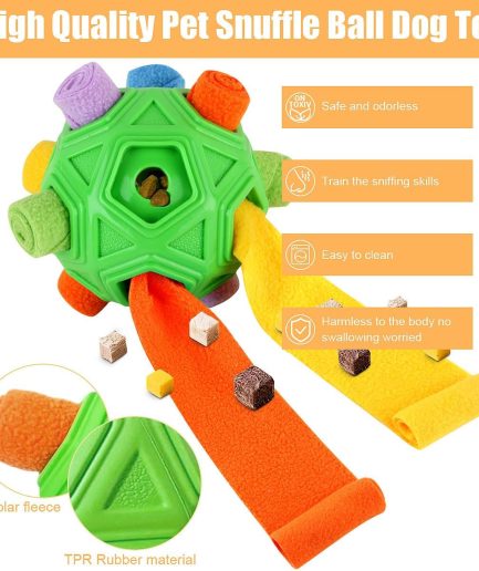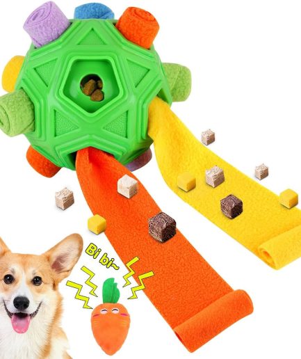 Dog Snuffle Ball-Interactive Puzzle Dog Toys Encourage Natural Foraging Skills Slow Feeder for Training and Stress Relief, Cloth Strip Hiding Food Chew Toys with Squeaky Carrot Toy for Any Size