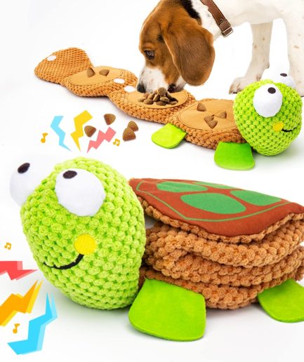 Dog Puzzle Toys – Enrichment Squeaky Crinkle Snuffle Treat Dispensing Smart Dog Toys for Boredom and Stimulating, Durable Plush Toys for Large Medium Small Breed – Turtle